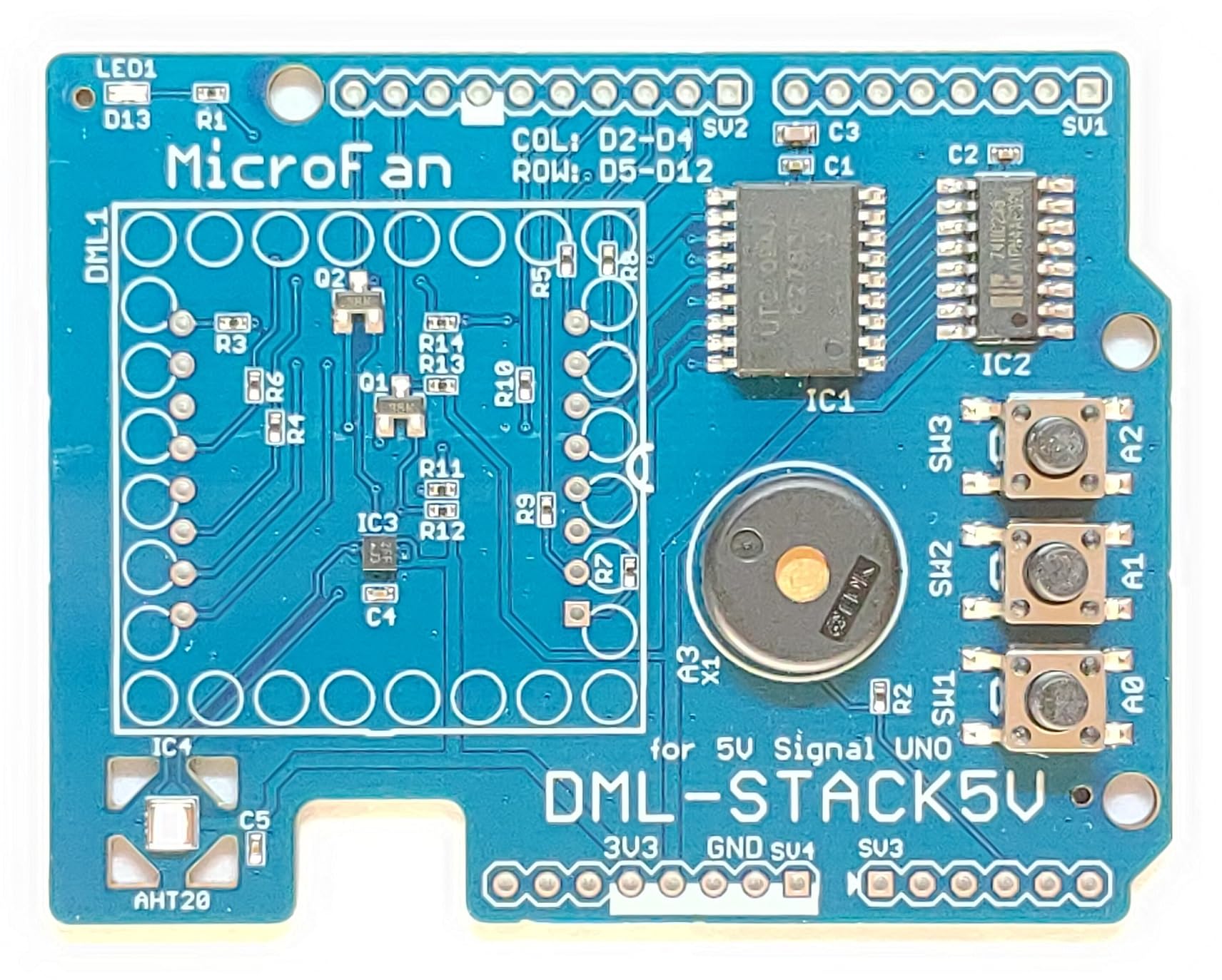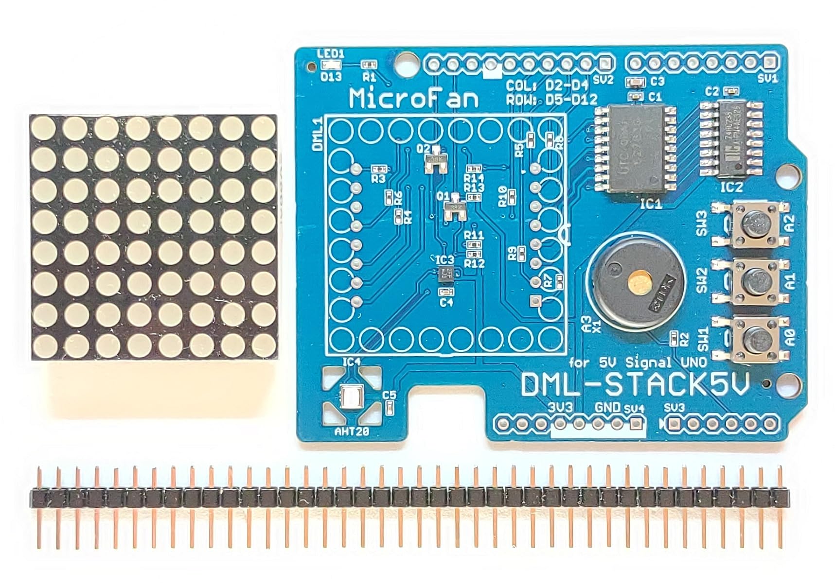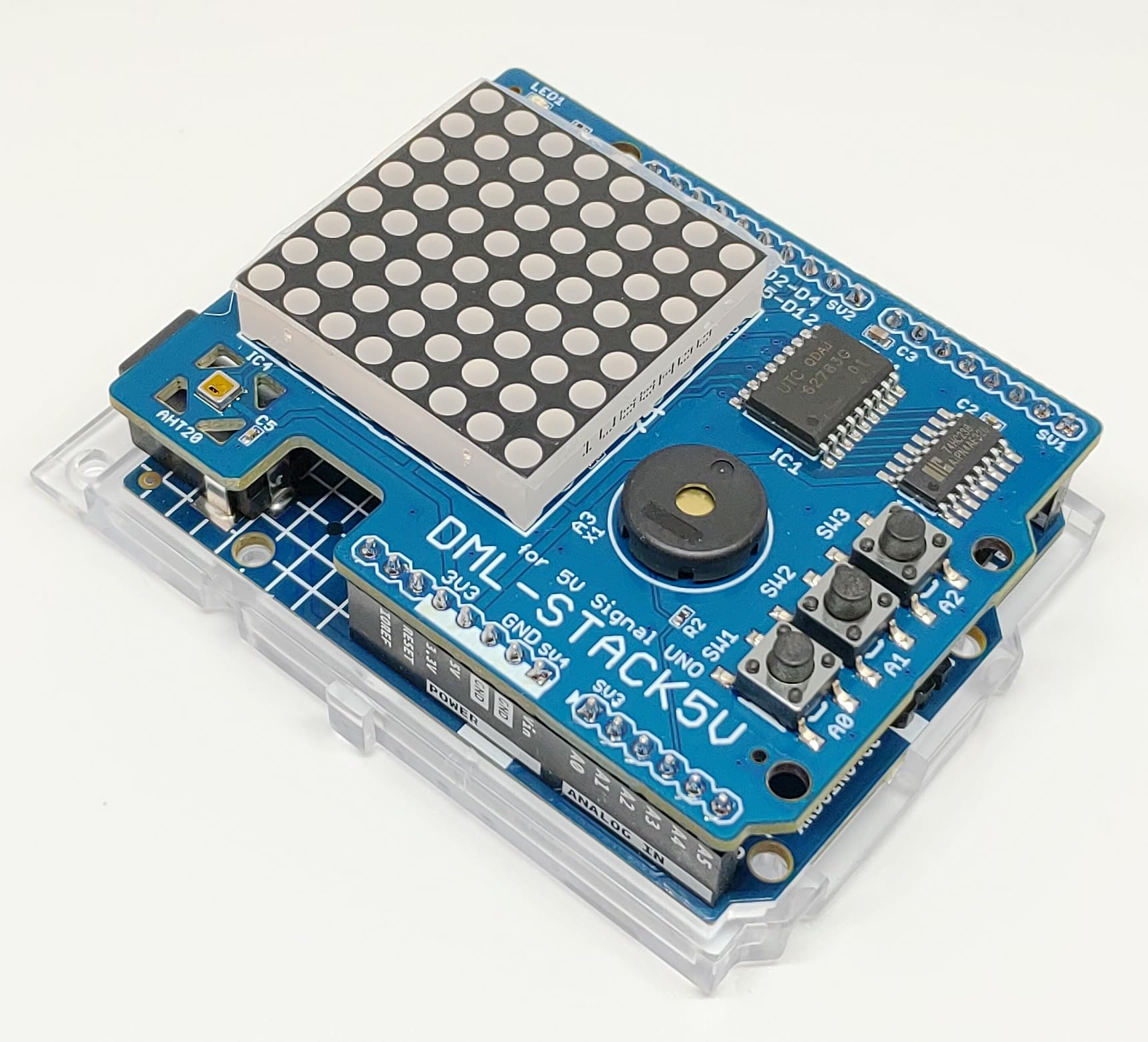 DML-STACK5V (8x8 ドットマトリックスLED、加速度、温度・湿度センサー、圧電スピーカー、タクトスイッチ搭載)シールドキット