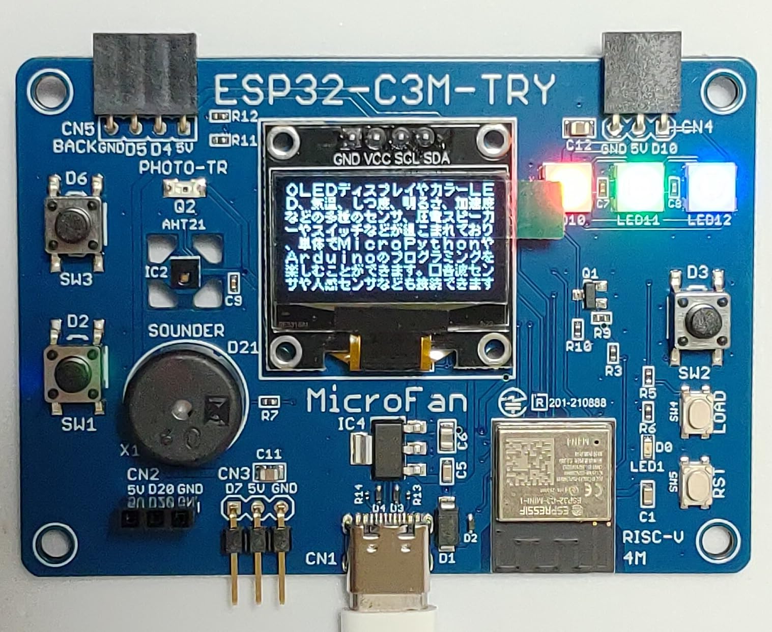 - 取扱説明書をご参照ください: www.microfan.jp/document/ESP32-C3M-TRY-R1-20230701.pdf