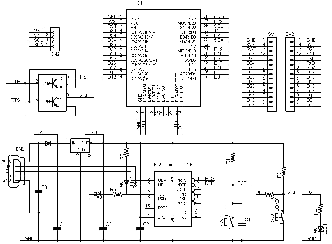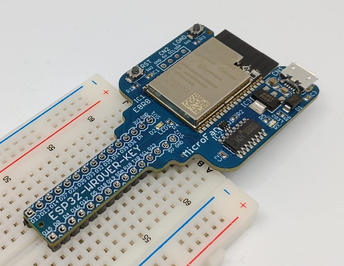 - ESP32-WROVER-E (ESP32E, 8MFlash 8MPSRAM)をブレッドボードで利用できるようにした開発ボードです。