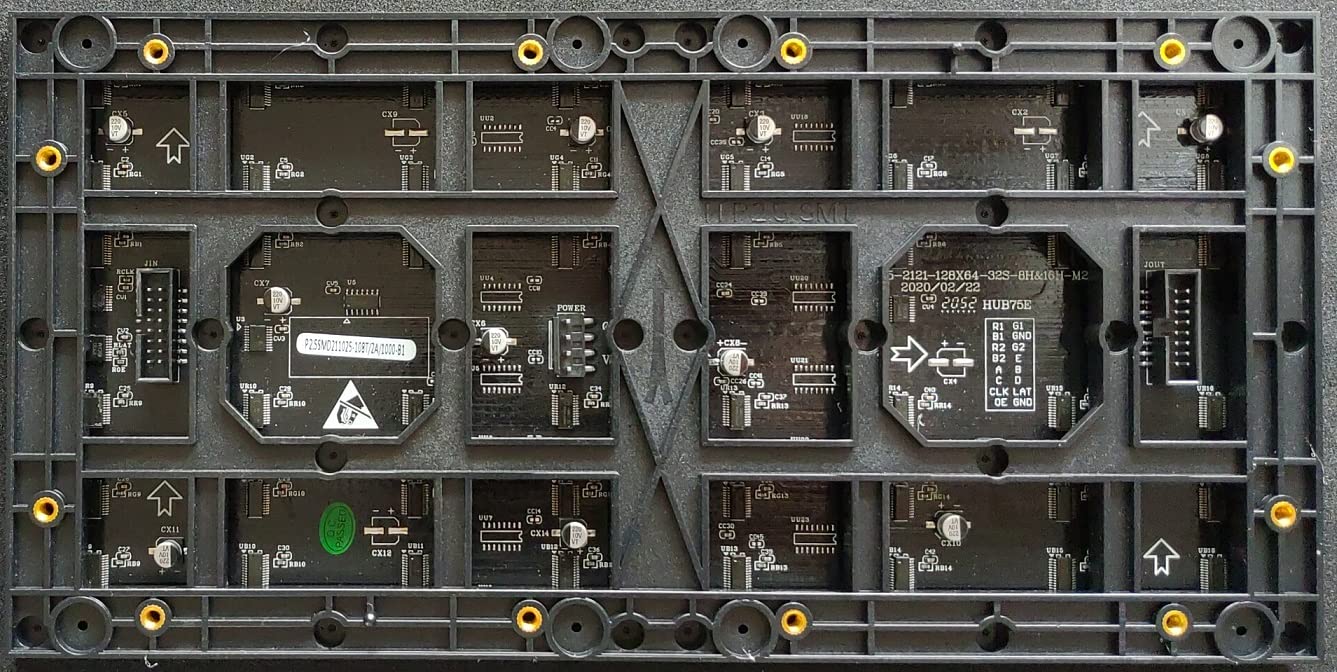 - 駆動用の信号線はHUB75E規格(5V)で、スキャンは1/32です。LEDドライバはDP5125もしくはFM6124です。