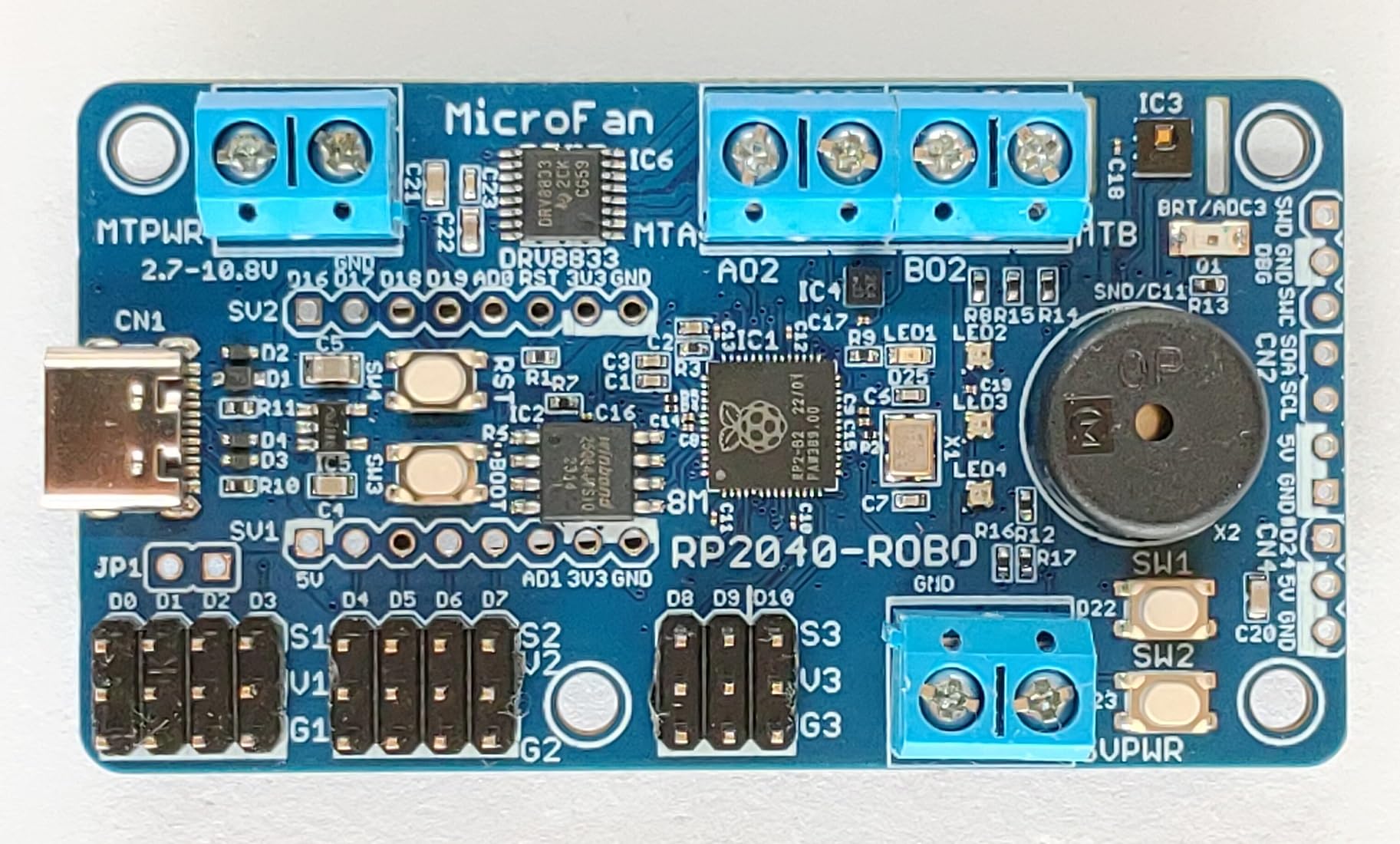 RP2040-ROBO (RP2040, Dual ARM Cortex-M0+ 8MB Flash) +センサー/RCサーボ/DCモーター コントローラ USB Type-C コネクタ
