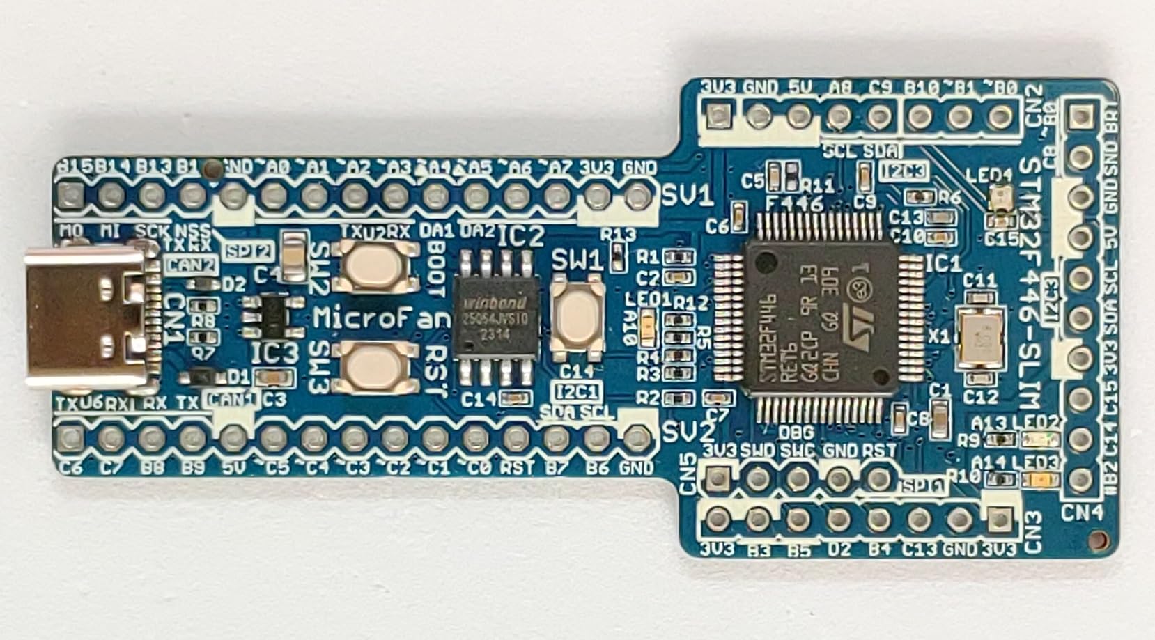 STM32F446-SLIM (STM32F446RE, ARM Cortex-M4, 180MHz, 512KFlash, 128KRAM)+8MFLASH開発ボード Type-C USBコネクタ
